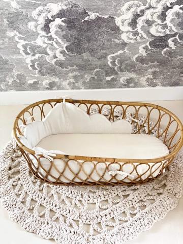 Tour de couffin en forme de nuages pour habiller le couffin de Bébounette (le précédent ayant été mangé par les souris du grenier).