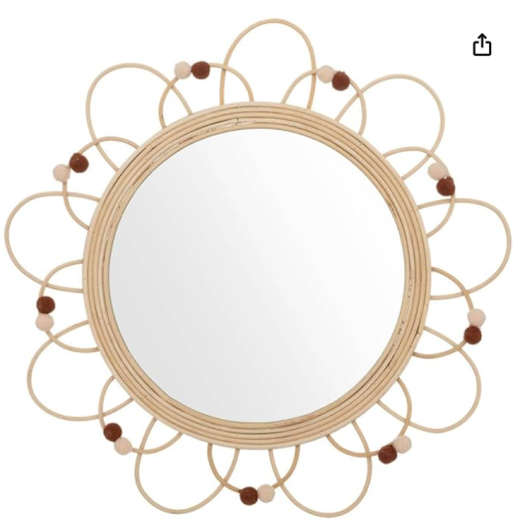en toute liberté. Il est possible d'ajouter toutes vos envies cadeaux et de recevoir les dons directement sur votre compte. Avec les dons reçus, vous êtes alors libre d'aller acheter vos produits (comme ce 'Miroir en rotin à pompons