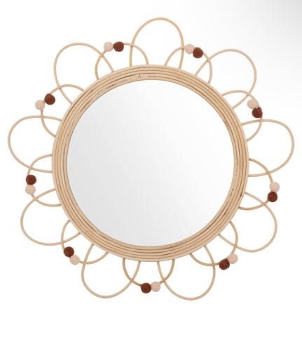 Optez pour ce miroir enfant Campagne de la marque Atmosphera for kids. Belle décoration de chambre. Conçu en rotin avec des pompons. Livraison rapide......