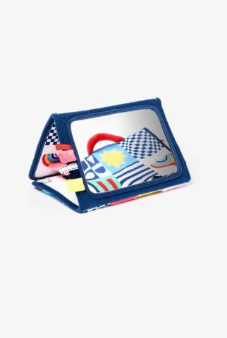 Ce miroir multi-activités pliable réserve de nombreuses découvertes ! Il peut l’explorer entièrement déplié, à plat, ou plié dans sa position de chevalet. Sur chaque panneau, bébé découvre une activité différente pour mettre ses sens en éveil.
