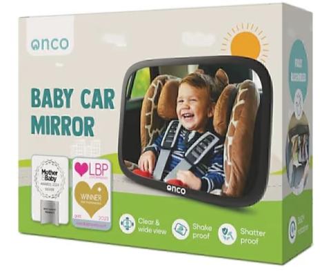 Onco Rétroviseur de voiture pour bébé à 360° - Vainqueur de comparaison 2025, 100 % incassable et antidérapant - Primé 2024 et 2023 - Champ de vision clair - 17,5 x 24,5 cm