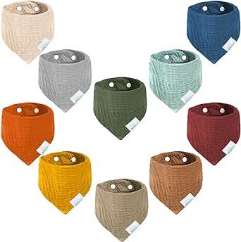 Miyacare 10 bavoirs triangulaires pour bébé, 100% Coton Biologique, Doux Absorbant, avec 4 Bouton Réglable, pour Bébés, Tout-petits et Nouveau-nés Garçons (Couleur foncée) : Amazon.fr: Bébé et Puériculture