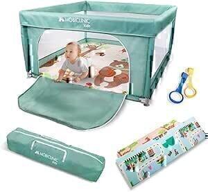 Mobiclinic®Kids, Parc Enfant + Tapis de jeu réversible, Pliable, 125X125cm, Sac de transport, Maille respirante, Happyland, Tissu lavable, Poignées, Parc pour bébé, Sécurisé, Entrée latérale (Vert) : Amazon.fr: Bébé et Puériculture