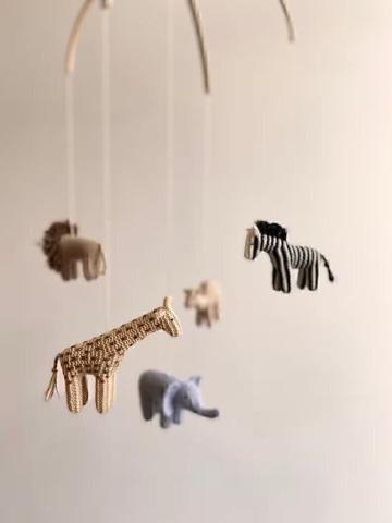 Mobile pour chambre d'animaux de la jungle ou de safari. J'ai tricoté ces animaux à partir de mon propre modèle.