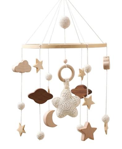 Promise Babe Bébé Mobile avec Nuages, Lune, Etoiles - Fait main, Bois Crocheté