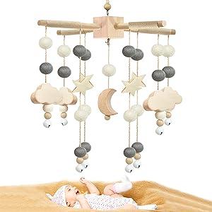 Mobile Bébé en Bois Cloches de Lit Bébé avec Boules de Feutre Cloche de Lit Mobile Bebe pour lit de Bébé Carillons éoliens Mobiles