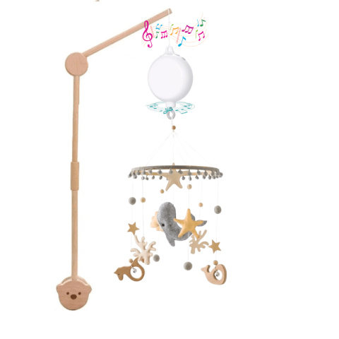 Mobile Bébé Océan : Le Kit Idéal pour une Ambiance Marine Apaisante Embarquez votre bébé dans un univers de douceur et de sérénité avec le mobile bébé Océan. Ce kit complet comprend un mobile décoré de petites baleines en coton tricoté, une boîte à musique aux multiples fonctions, et un support en bois naturel pour une installation rapide et sécurisée. Parfait pour créer une ambiance marine apaisante dans la chambre de votre bébé, tout en stimulant son éveil.