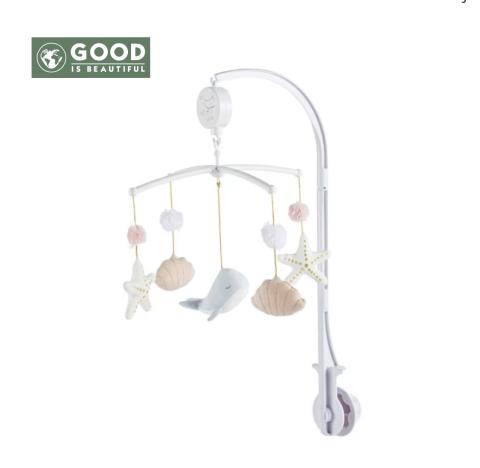Mobile musical bébé baleine, étoiles et pompons en coton bio multicolore