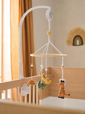 Une ronde d'animaux tournoie au dessus de bébé pour l'apaiser avant de dormir. Accompagné d'une douce mélodie, il le transportera directement au pays des jolis rêves...