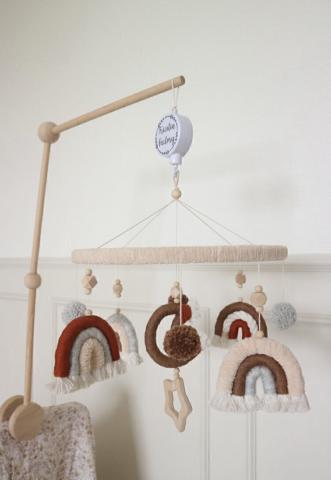 Mobile musical réalisé sur demande par une artisane à Casablanca (Tricotin Factory).