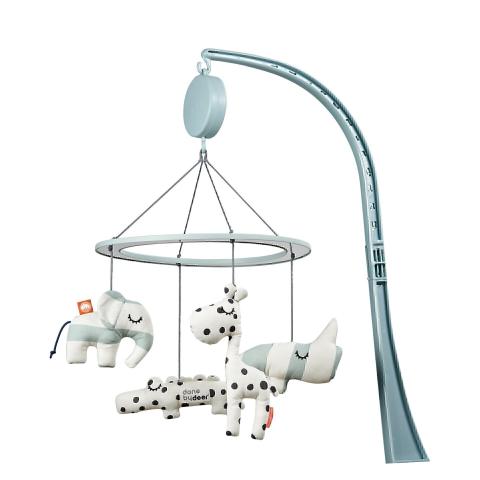 Laissez votre tout petit profiter de la berceuse réconfortante et amusez-vous à découvrir les reflets dans le miroir qui flotte au-dessus des amis endormis.Avec ses douces nuances de bleu, ce joli mobile éveillera la curiosité de votre bébé. Les amis Deer Friends Croco, Elphee, Raffi et Nozo stimuleront doucement les s