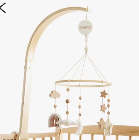 La boîte à musique possède un bouton On/Off, et la structure du mobile pourra se fixer facilement au lit de votre enfant grâce à la molette de serrage.