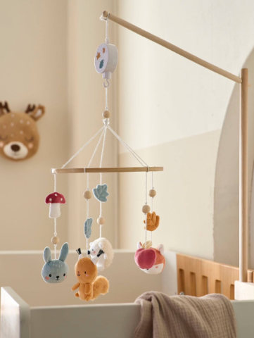 Des éléments qui tournent, une douce mélodie apaisante... il n'en faut pas plus aux petits pour se laisser transporter au pays des rêves. Un mobile en bois du thème Les amis de la Forêt qui émerveillera les enfants avant de dormir.