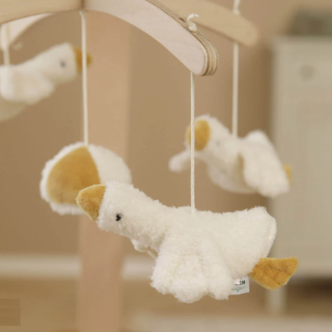 Un mobile avec 5 oies, une petite boule miroir et la berceuse "Over The Rainbow", pour apaiser et divertir le petit dans son parc ! Dégoté en seconde main à 40€ au lieu de 60€.