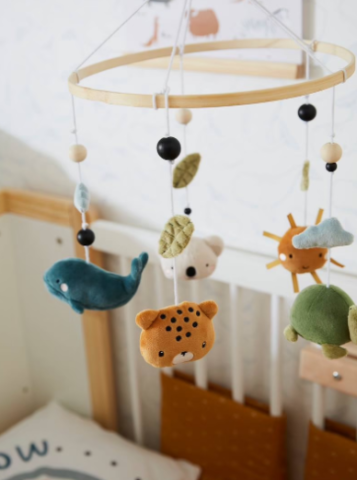 Une ronde d'animaux tournoie au dessus de bébé pour l'apaiser avant de dormir. Accompagné d'une douce mélodie, il le transportera directement au pays des rêves