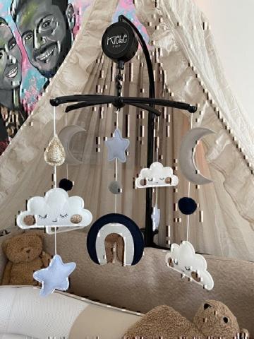 en toute liberté. Il est possible d'ajouter toutes vos envies cadeaux et de recevoir les dons directement sur votre compte. Avec les dons reçus, vous êtes alors libre d'aller acheter vos produits (comme ce 'Mobile musical Rainbow COMPLETE bleu - Mobile pour bébé noir - Mobile pour parc bébé - Parc - avec SUPPORT noir et BOÎTE À MUSIQUE avec 10 MÉLODIES