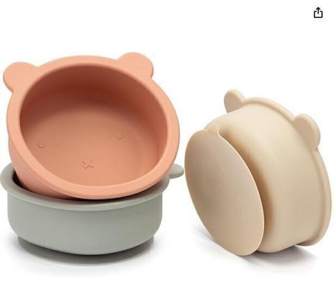MOJINL Lot de 3 bols en silicone pour bébé avec ventouse - Antidérapants - Avec aspiration - Passent au micro-ondes - Pour bébé - Sans BPA - Pour enfants et tout-petits : Amazon.com.be: Bébé et Puériculture