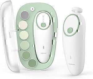 Momcozy Electric Baby Nail File, Rechargeable Electric Nail Clipper, Electric Baby Nail Clippers, 360° Fog, Soft Light, 7 Replacement Pads for Grinding Head