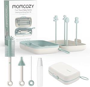 Momcozy Ensemble de brosses 7 en 1 pour biberon – Kit complet de nettoyage pour biberon avec brosse en silicone, brosse à tétine , brosse à paille, distributeur de savon et égouttoir