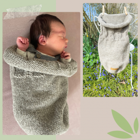 Bébé dort apaisé dans son cocon "SuperNaturel" 100% laine mérinos cardée, non teintée, non traitée.