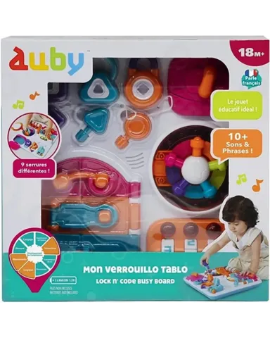 MON VEROUILLO TABLO 10 SONS Pour exercer les petits à ouvrir des serrures (clefs, verrous, cadenas à code, coffre-fort et porte-monnaie). Développe la motri...