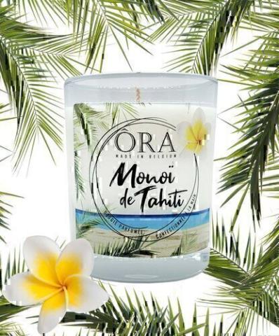Monoï de TahitiQu’il est agréable de s’enivrer des odeurs typiques de l’été avec cette bougie parfumée Monoï de Tahiti. Elle s’inspire de la douce odeur de l’huile solaire au monoï avec laquelle on se badigeonne sous le soleil, allongé sur une plage de sable blanc. Elle présente des notes d’ylang-ylang, d’orchidée, de fleur de tiaré, de jasmin, de monoï et de noix de coco sur fond vanillé. Cire 100% végétale.Mèche en coton.Fragrance provenant de Grasse - sans CMR et phtalates.Poids net : 175gDurée : 40/45h
