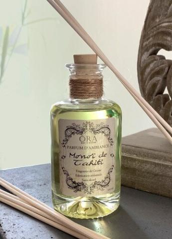 Diffuseur de parfum - Monoï de Tahiti Qu’il est agréable de s’enivrer des odeurs typiques de l’été avec ce diffuseur de parfum "Monoï de Tahiti". Cette fragrance s’inspire de la douce odeur de l’huile solaire au monoï avec laquelle on se badigeonne sous le soleil, allongé sur une plage de sable blanc. Elle présente des notes d’ylang-ylang, d’orchidée, de fleur de tiaré, de jasmin, de monoï et de noix de coco sur fond vanillé. La diffusion par bâtonnets dégage un parfum subtil et continu. Idéalement approprié pour des petits espaces tels qu'un bureau, une buanderie, une pièce de passage, un dressing, une chambre ou encore une salle de bain. Nous vous conseillons de retourner une première fois les bâtonnets 24h après les avoir placés et de répéter cette opération toutes les 2 semaines. Fabrication artisanale - formule sans alcool - parfum de Grasse (sans CMR, ni phtalates).Contenance : 100ml.Durée de diffusion : environ 2 mois.
