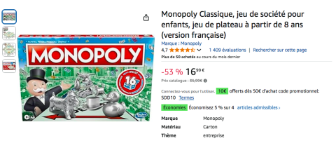 en toute liberté. Il est possible d'ajouter toutes vos envies cadeaux et de recevoir les dons directement sur votre compte. Avec les dons reçus, vous êtes alors libre d'aller acheter vos produits (comme ce 'Monopoly