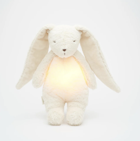 Humming Bunny Polar Natur avec lumière et musique de Moonie. Ce lapin doux et câlin garantit que votre bébé s'endort facilement et paisiblement grâce à une veilleuse intégrée et une musique apaisante.