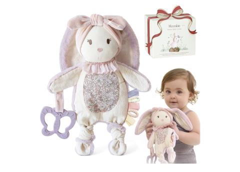 Moonkie Baby Comforter, Rabbit Safety Blanket with Silicone Teether, Newborn Girl Gift for Baby Shower and Birthday, Plush Toy with Ribbons : Amazon.com.be: Toys