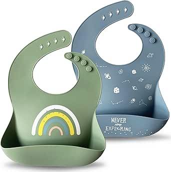 Moonkie BPA-Free Silicone Bibs, Newborn Bibs, Waterproof and Durable, Adjustable for Babies and Toddlers (Blue/Grey/Green-Grey) : Amazon.com.be: Baby Products