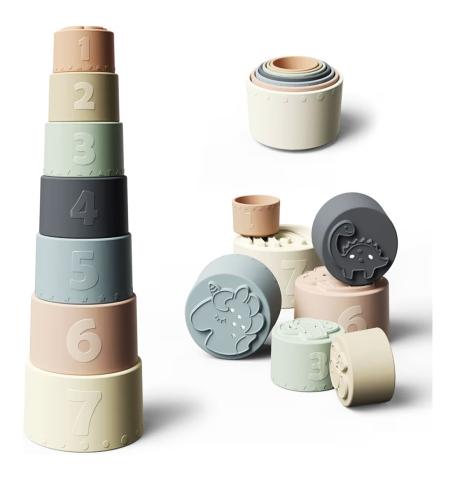 Moonkie Montessori Stacking Toys, Stackable Silicone Tumbler, Soft Dental Toy, Educational Early Learning Toy for Toddlers, Baby Child Gift (Fine Day) : Amazon.com.be: Toys