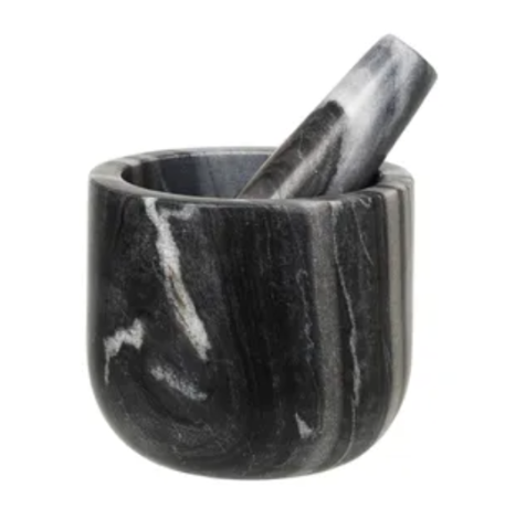 Un beau mortier pour la cuisine ! (nous avons notamment une recette de pesto incroyable à faire au mortier !)