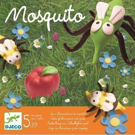 Dans Mosquito de Djeco, soyez le plus vif pour attraper la pomme, écraser le moustique ou placer votre abeille sur la fleur !