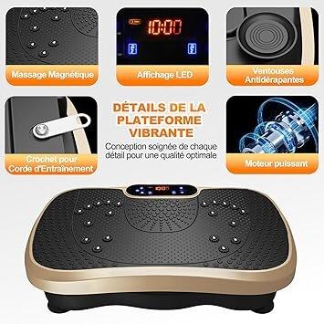Achetez Moziel Plateforme Vibrante, Plaque Vibrante Oscillante 99 Niveaux d'Intensité & 5 Programmes, avec Haut-Parleur Bluetooth, 2 Bandes Résistances et Télécommande-Or: Amazon.fr ✓ Livraison & retours gratuits possibles (voir conditions)