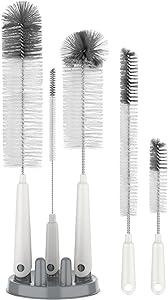 MR.SIGA Ensemble de 5 Brosses à Bouteille avec Support de Rangement, Brosses de Nettoyage pour Bouteilles à Col Etroit, Bouteilles d'eau, Biberons, Gobelets, Verres à Boire : Amazon.fr: Cuisine et Maison