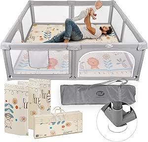 MS Parc XXL + tapis de jeu pour bébé, double face, rembourrage épais 1,5 cm d'épaisseur, pliable et avec sac de transport, 180 x 200 cm : Amazon.com.be: Bébé et Puériculture