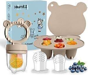 MumEZ Mangeoire à fruits pour bébé – Ensemble de mangeoires pratiques pour bébé, voyage auto-alimentation facile avec tétine pour nourriture, plateaux de congélation pour bébé inclus (gris) : Amazon.com.be: Bébé et Puériculture