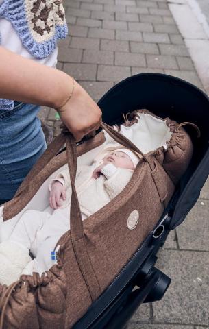 Le Couffin SleepCarrier X Najell s'adapte à toutes les poussettes, se transforme en tapis de jeu et en nacelle.