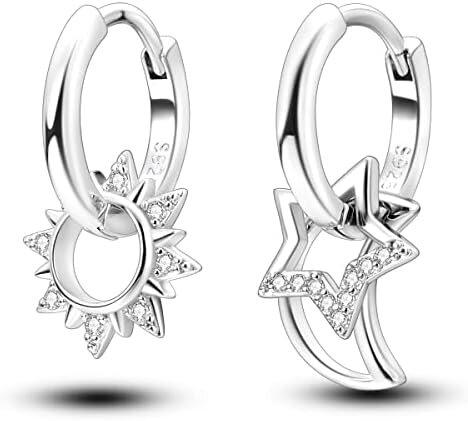 Narmo Pendentif boucles d'oreilles gouttes, argent 925, boucles d'oreilles en argent sterling pour femmes, filles, zircon cubique, boucles d'oreilles cerceau mauvais œil, pendentif boucles d'oreilles : Amazon.com.be: Mode