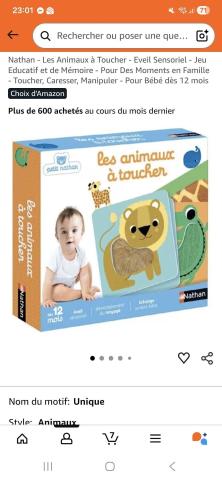 en toute liberté. Il est possible d'ajouter toutes vos envies cadeaux et de recevoir les dons directement sur votre compte. Avec les dons reçus, vous êtes alors libre d'aller acheter vos produits (comme ce 'Nathan - Animals to Touch - Sensory Awakening - Educational and Memory Game - For Family Moments - Touch, Stroke, Handle - For Babies from 12 Months : Amazon.fr: Toys & Games
