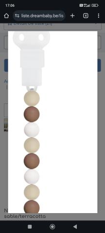 Ce produit est extrait d'une liste de cadeaux (Anniversaire, Noël, ...) déposée sur Kadolog. Kadolog permet de créer des listes de cadeaux (Anniversaire, Noël, ...) en toute liberté. Il est possible d'ajouter toutes vos envies cadeaux et de recevoir les dons directement sur votre compte. Avec les dons reçus, vous êtes alors libre d'aller acheter vos produits (comme ce 'Nattou Attache-sucette sable/terracotta | Liste de cadeaux Dreambaby ') où et quand vous le souhaitez.