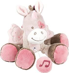Adorable mini peluche musicale Licorne Jade avec mécanisme musical, Berceuse douce "La-Le-Lu" pour de doux rêves, Rubans à attacher au lit, au siège bébé ou à la poussette