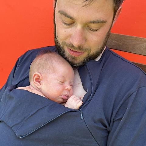 Ce T-shirt peau à peau Naturiou vous permet d'être en contact avec un bébé sans être exposé torse nu.