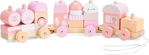 Navaris Jouet Train en Bois - Jeu Train 40 x 7,2 x 9 cm pour Enfants Bébés - 3 Wagons - Durable - Biodégradable - Pour Filles et Garçons : Amazon.fr: Jeux et Jouets