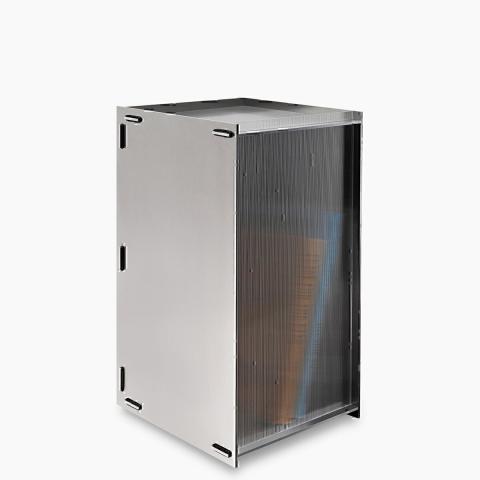 Industrial-style minimalist aluminium side table. This piece of furniture can be positioned either vertically or horizontally. It is perfect for placing in the bedroom next to the bed, in the living room beside the sofa or armchair, or in the office by the desk. It can also serve as a podium for a sculpture. The cavity