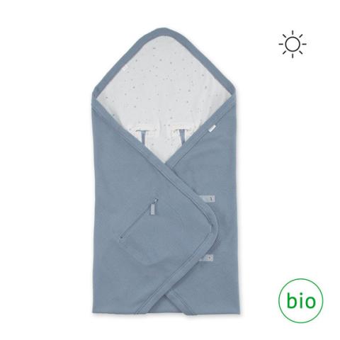 Modèle universel, la couverture de sécurité s'adapte à tous les équipements de bébé : nacelle, siège auto, poussette au système de fixation de ceintures 3 ou 5 points.Parfaitement adapté à la délicate peau de bébé, le coton organique respecte les peaux sensibles et convient parfaitement aux mi-saisons et à l'été pour toutes les balades en poussette et les voyages en voiture dès la naissance. • Créateur de la meilleure gigoteuse, le Magic Bag®! Découvrez La couverture nomade Biside® particulièrement adaptée au maxi cosi, et nos articles essentiels, doux et design dès la naissance de votre bébé.