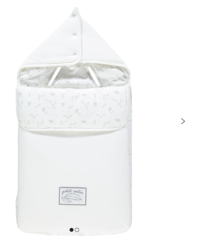 Ce produit est extrait d'une liste de naissance déposée sur Kadolog. Kadolog permet de créer des listes de naissance en toute liberté. Il est possible d'ajouter toutes vos envies cadeaux et de recevoir les dons directement sur votre compte. Avec les dons reçus, vous êtes alors libre d'aller acheter vos produits (comme ce 'Nid d’ange en coton motif plumes pour bébé ') où et quand vous le souhaitez.