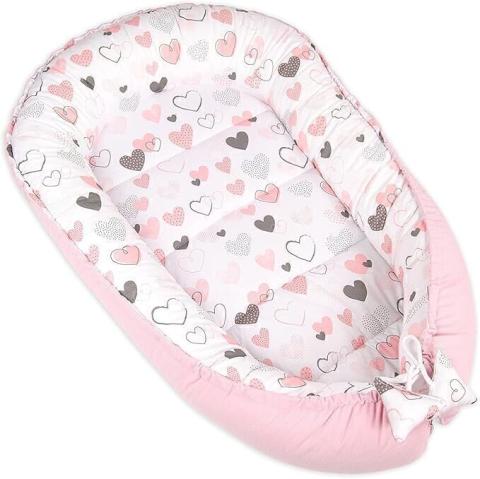 PIMKO Nid de bébé 2 côtés - Nid cocon pour bébé - Hypoallergénique - Nid de bébé - 90 x 55 cm - Coton et velours (cœurs roses) : Amazon.fr: Bébé et Puériculture