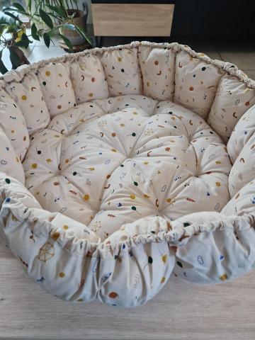 Peut être utilisé comme nid de bébé et comme tapis d’éveil une fois déplié, de la marque Liewood.